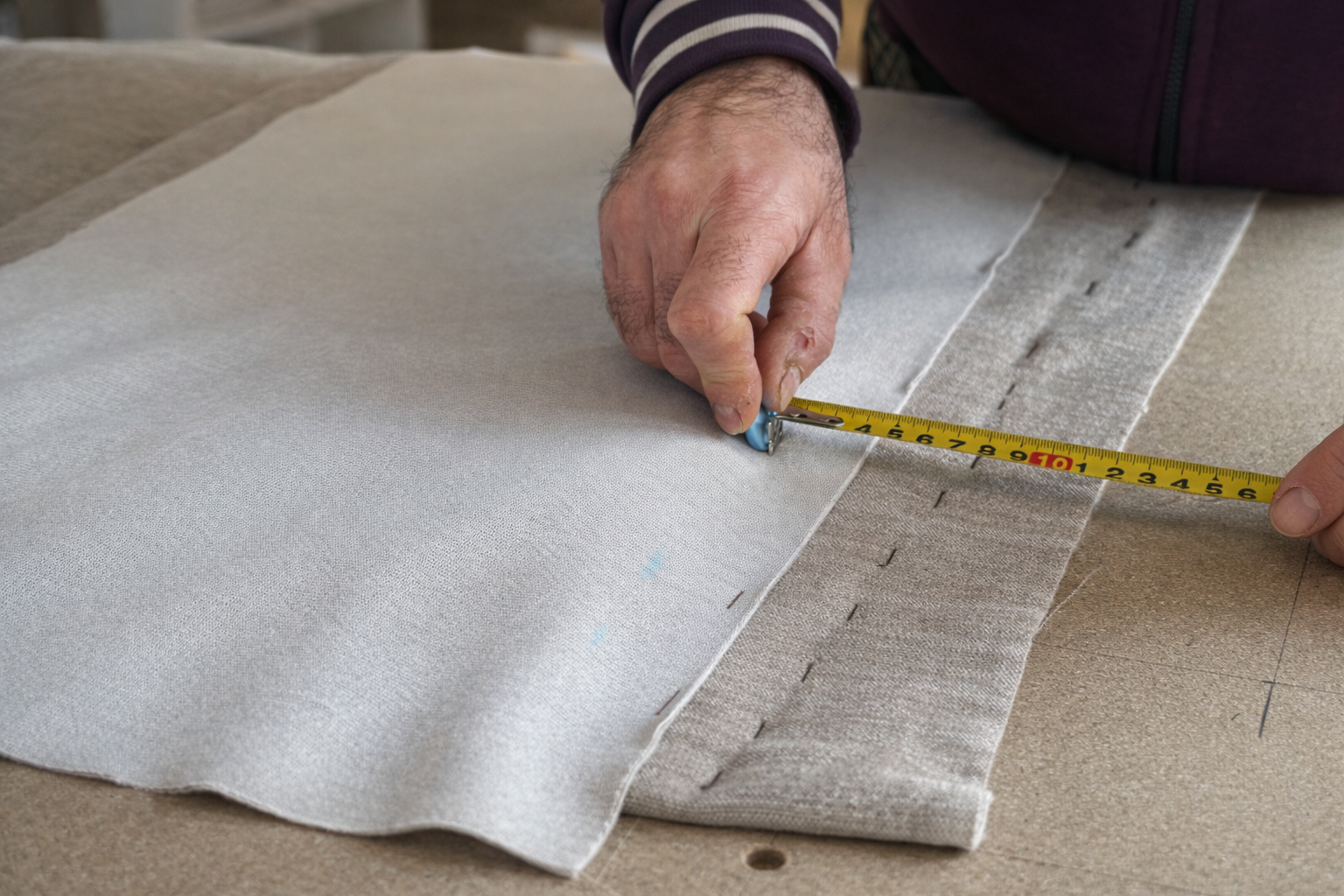 Kontrolujeme rovnomernosť napnutia látky, presnosť švov, symetriu detailov aj správnu funkčnosť jednotlivých častí.