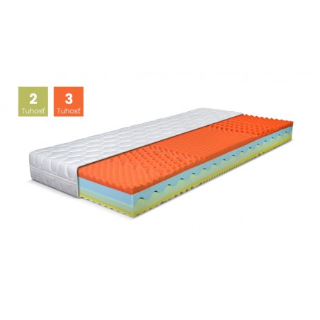 5-zónový matrac, ktorého jadro je zložené  z dvoch typov veľmi kvalitných studených pien zámkovým spojom a v kombinácii s Visco penami dvoch tuhostí. Výrazné profilovanie povrchu zaručuje správny a súčasne veľmi kvalitný spánkový komfort, vďaka ktorému je zaručené odľahčenie exponovaných miest na tele. Toto odľahčenie viditeľne zlepšuje prekrvenie pokožky a uvoľnenie svalov, čím sa spánok stáva kľudnejší a znižuje sa potreba meniť spánkovú polohu. Matrac je určený pre váhovú kategóriu do 130kg. Poťah Dry fast.